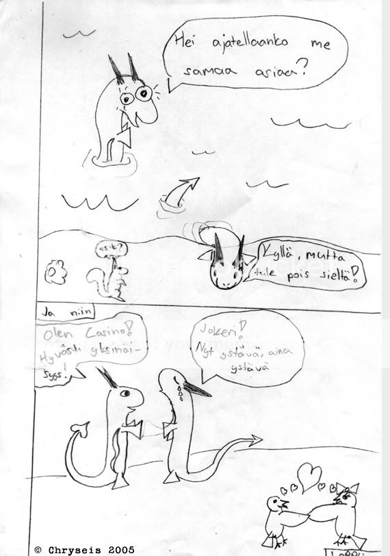 Haha :'3 Ylivanha sarjis, jota tein enemmänkin kuin tämän säälittävän pätkän, mutta olenpas hävittänyt hukannut muut valmiit sivut ^^'